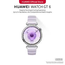 - The Huawei Watch GT 6 41mm Silver (Purple Band) combines iconic design with smart technology. You’ll enjoy accurate GPS and heart rate monitoring, up to 8 days of battery life and advanced sports features like pro-level bike tracking with simulated power data. Thanks to its lightweight design, it is always comfortable. Furthermore, you can pair it with both iOS and Android!